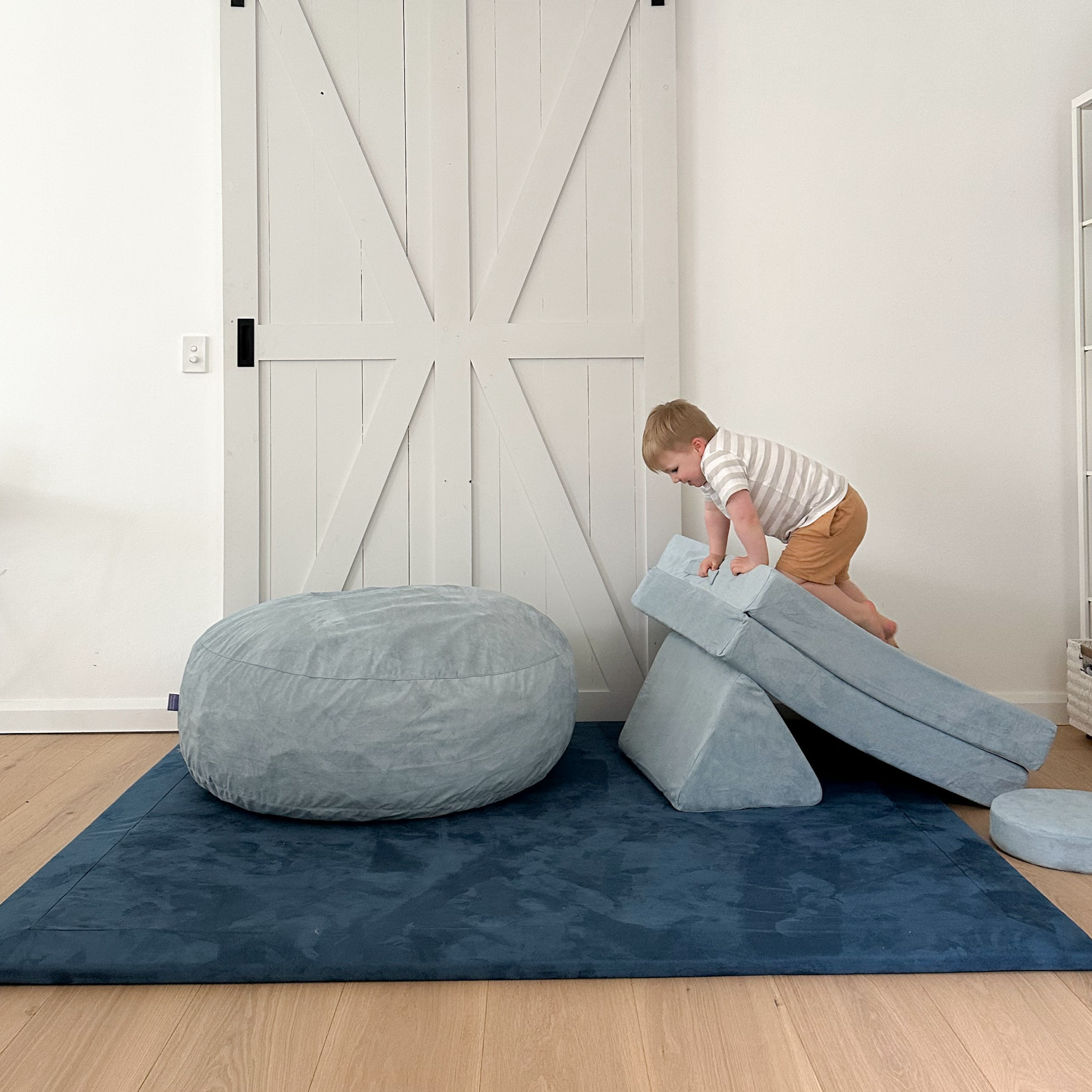 The shorter edge of the Play Mat perfectly matches the length of your Possum Play Couch